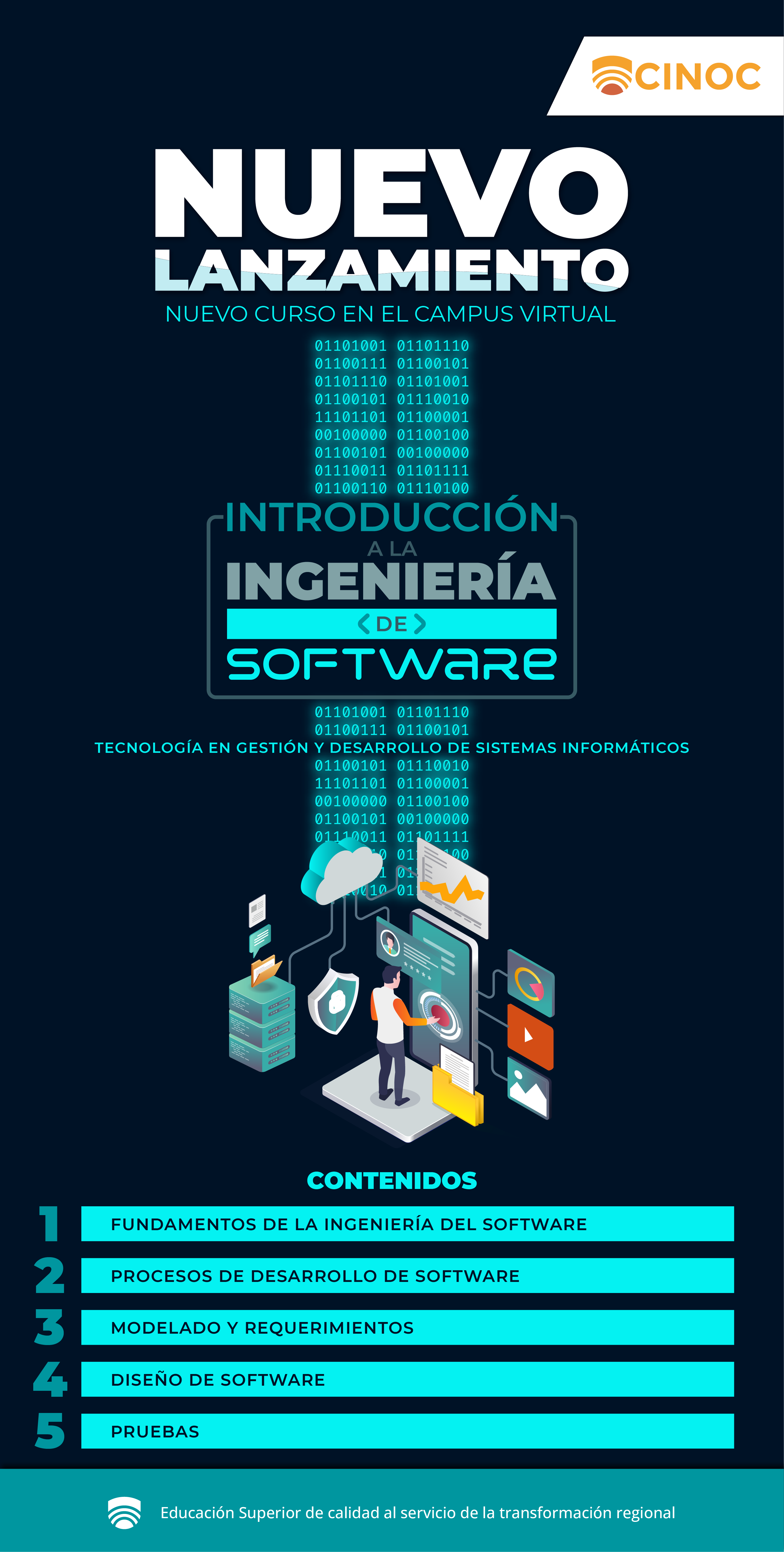 La ingeniería de software es una disciplina que se centra en el desarrollo sistemático, controlado y eficiente del software que implica el uso de principios científicos y tecnológicos para diseñar, desarrollar, mantener y gestionar sistemas de software de calidad. La ingeniería de software va más allá de la codificación, cubriendo todo el ciclo de vida del software, desde la idea inicial hasta la implementación y el mantenimiento constante, incluyendo las pruebas necesarias para asegurar al cliente la eficiencia y relevancia del sistema. Por lo tanto, el curso se organiza en cinco unidades temáticas que están diseñadas para que los estudiantes puedan utilizarlas en su futura profesión como Tecnólogos en gestión y desarrollo de sistemas informáticos.